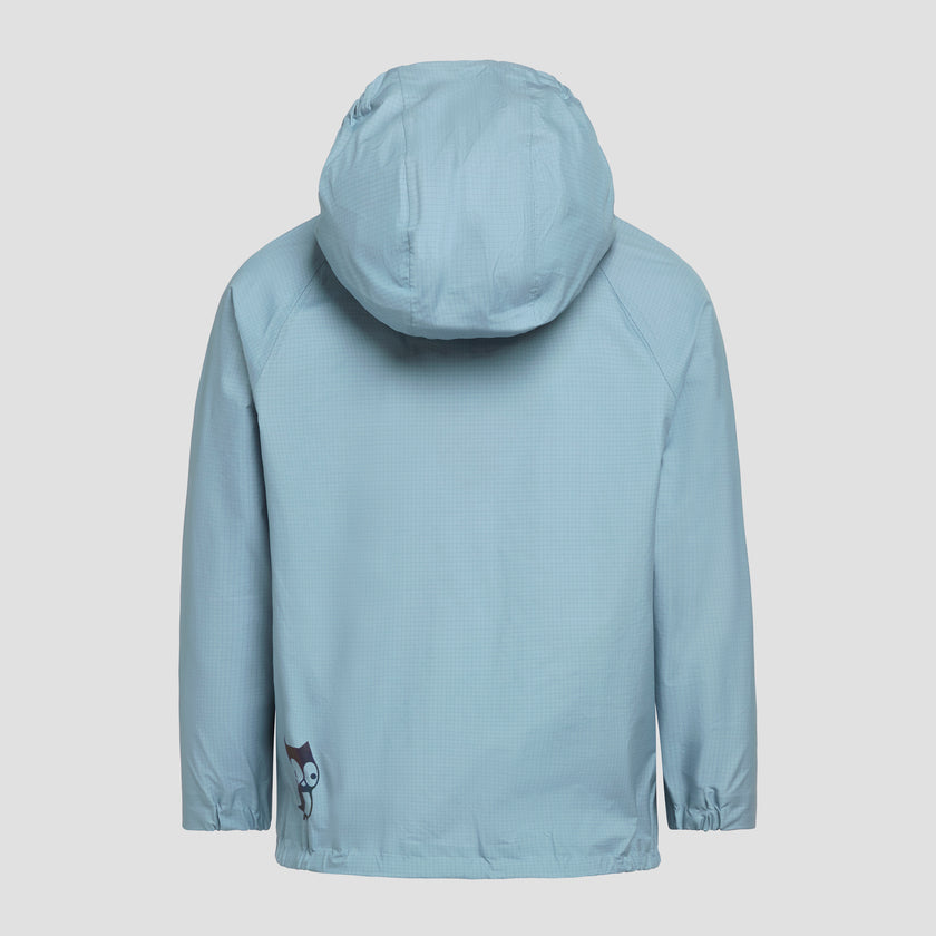 Sie vereint maximale Wasserdichte mit kleinstem Gewicht. Die Wassersäule von 25’000 mm in Kombination mit einer sehr hohen Atmungsaktivität von 50’000 gr/m2/24 sorgt dafür, dass beim stundenlangen Herumrennen im Regen zwar Schweiss entweichen kann, die Jacke aber trotzdem von Aussen keine Feuchtigkeit durchlässt und es so innen immer schön trocken bleibt. Die Jacke wiegt mit 150 Gramm (Grösse 128/134) etwas mehr als eine Schoggitafel und lässt sich bequem in der eigenen Innentasche verstauen.