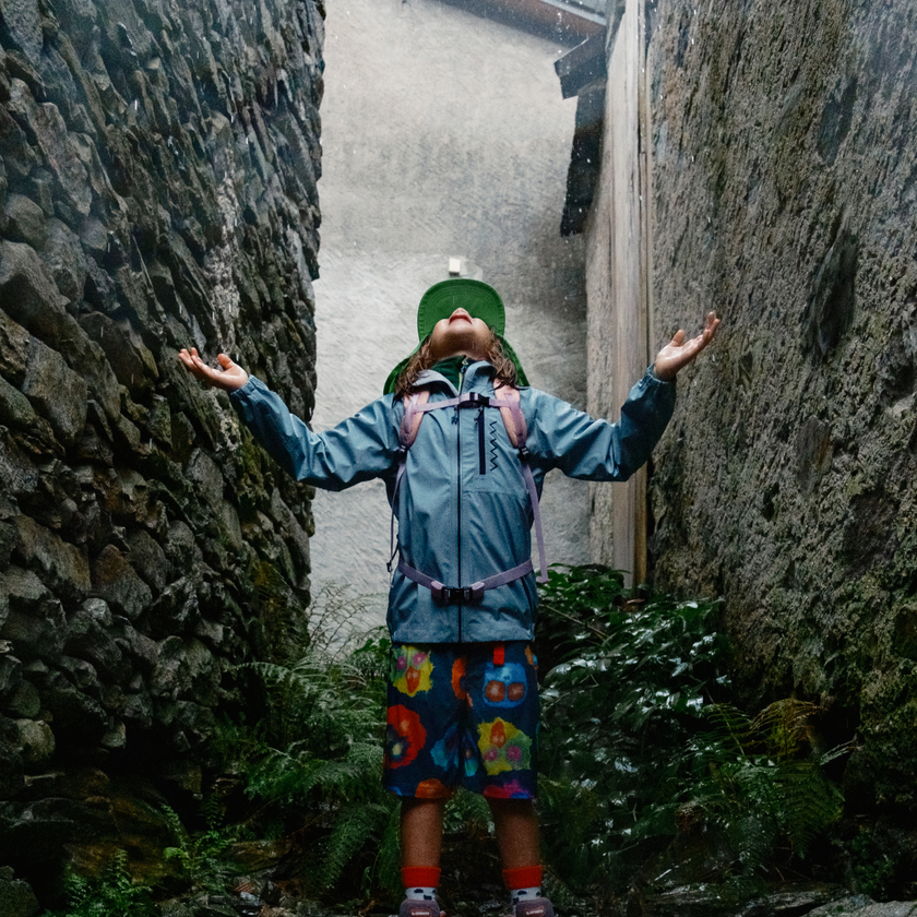 Nur: Lange möchte auch das abenteuerlichste Kind nicht durchnässt herumtollen. Unsere neue Ultralight Jacke One bewahrt vor Stimmungstiefs und Erkältungen.