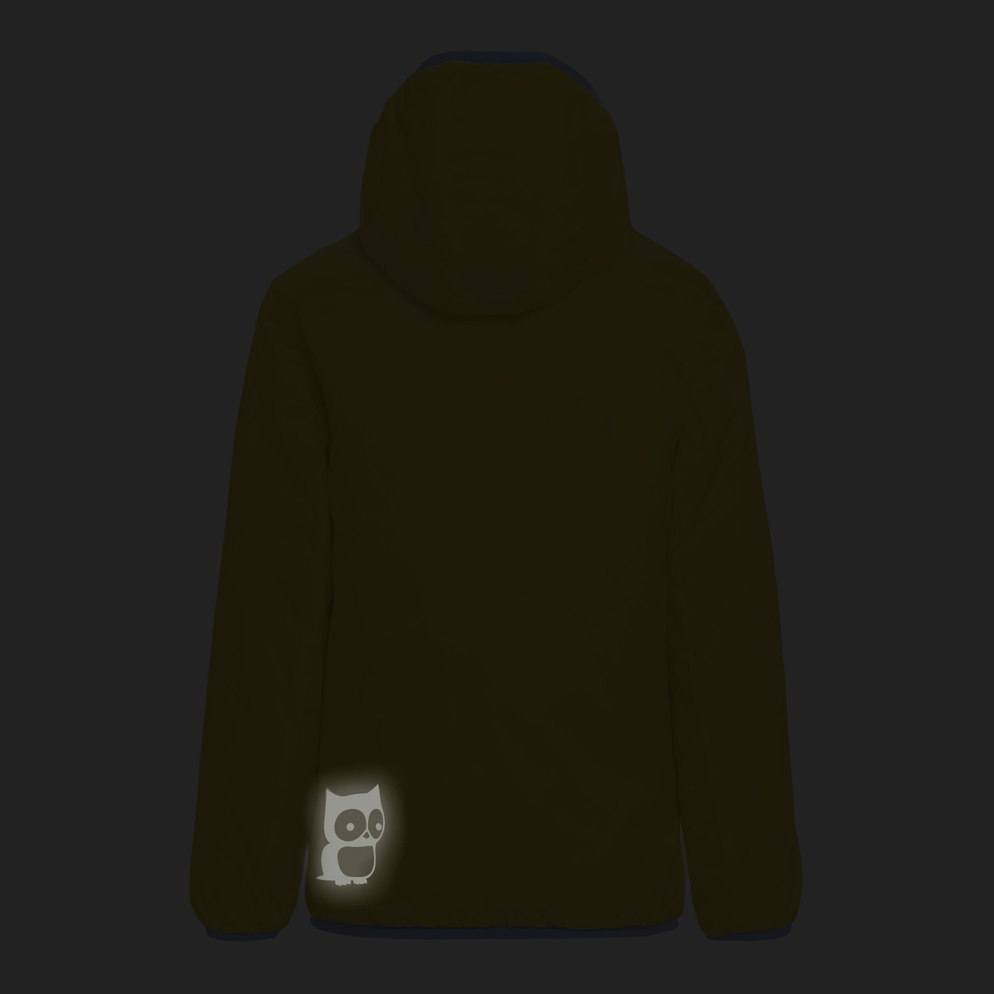 Die wärmende PrimaLoft® Jacke Glow lässt sich in zwei verschiedenen Looks tragen – einfach umdrehen! Neu gibt es Glow auch in einer limitierten Upcycling-Variante: Wir kombinieren sorgfältig ausgewählte Stoffreste und schaffen daraus neue Lieblingsstücke, die Abfall vermeiden und jedes Teil einzigartig machen. Und damit ihr das auf den ersten Blick erkennt, wacht über jeder Jacke eine bunte Eule, die für das ganze Spektrum an Stoffen steht und zeigt: Das hier ist Upcycling.