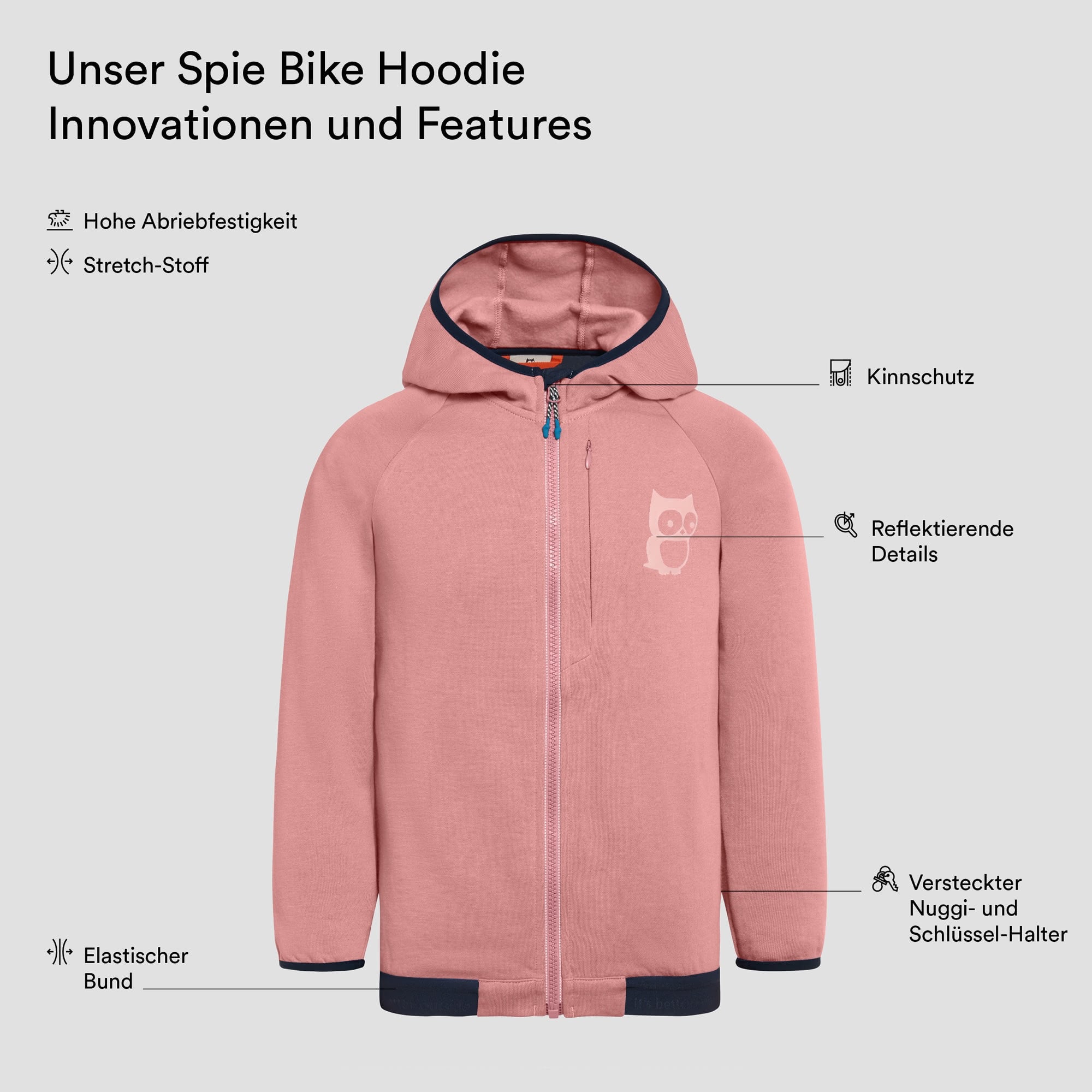 Dieser Hoodie ist so viel mehr als nur ein Hoodie. Er reflektiert – Details auf dem Rücken und ein Zipper vorne sorgen dafür, dass selbst die schnellsten Stadtpark-Blitze von Automobilist:innen gesehen werden.