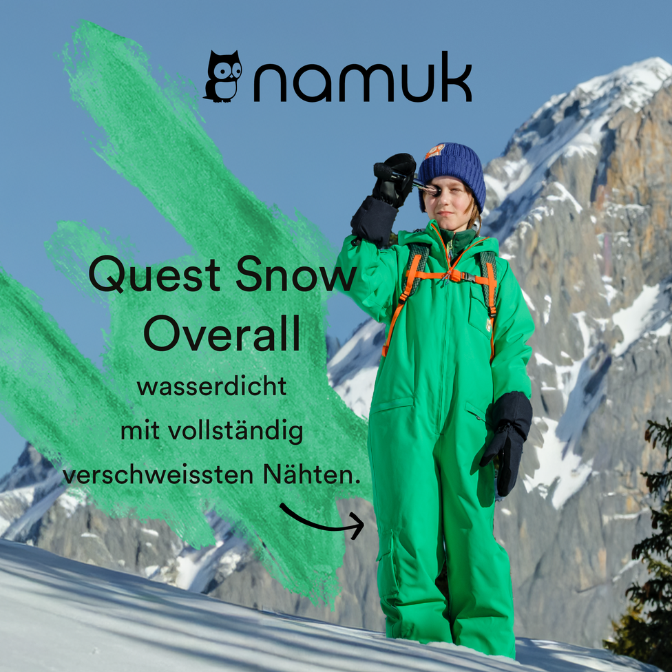 Unsere hochwertigen Skianzüge für Kinder sind perfekt für kleine Schneeabenteurer, die gerne draußen herumtoben. Der Quest Kinder Skianzug besteht aus strapazierfähigen Materialien und bietet den Kleinen optimalen Schutz und maximale Bewegungsfreiheit im Schnee. Mit praktischen Features wie dem namuk WC-Reißverschluss und integrierten Hosenträgern wird der Familienausflug auf oder neben der Piste zum Kinderspiel.