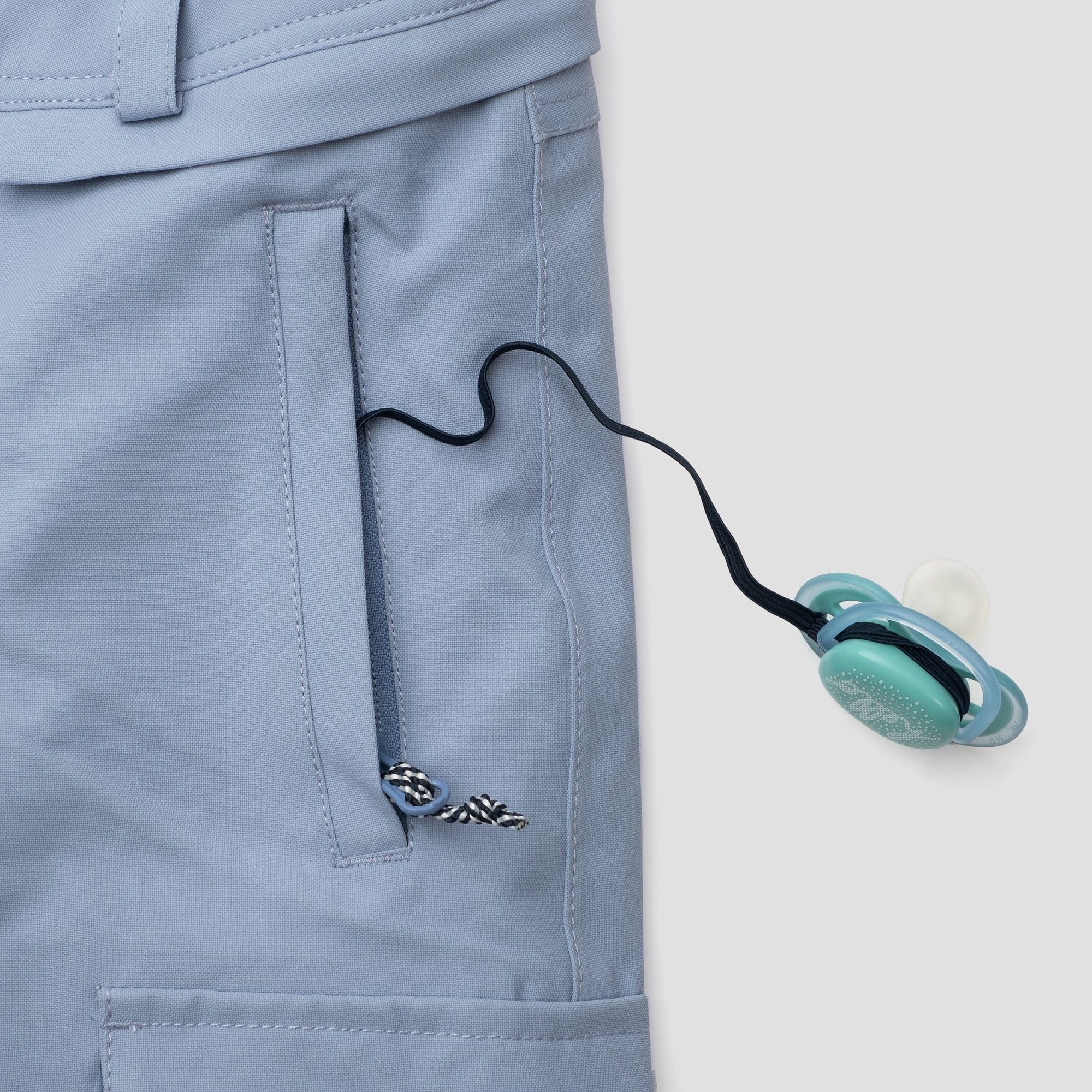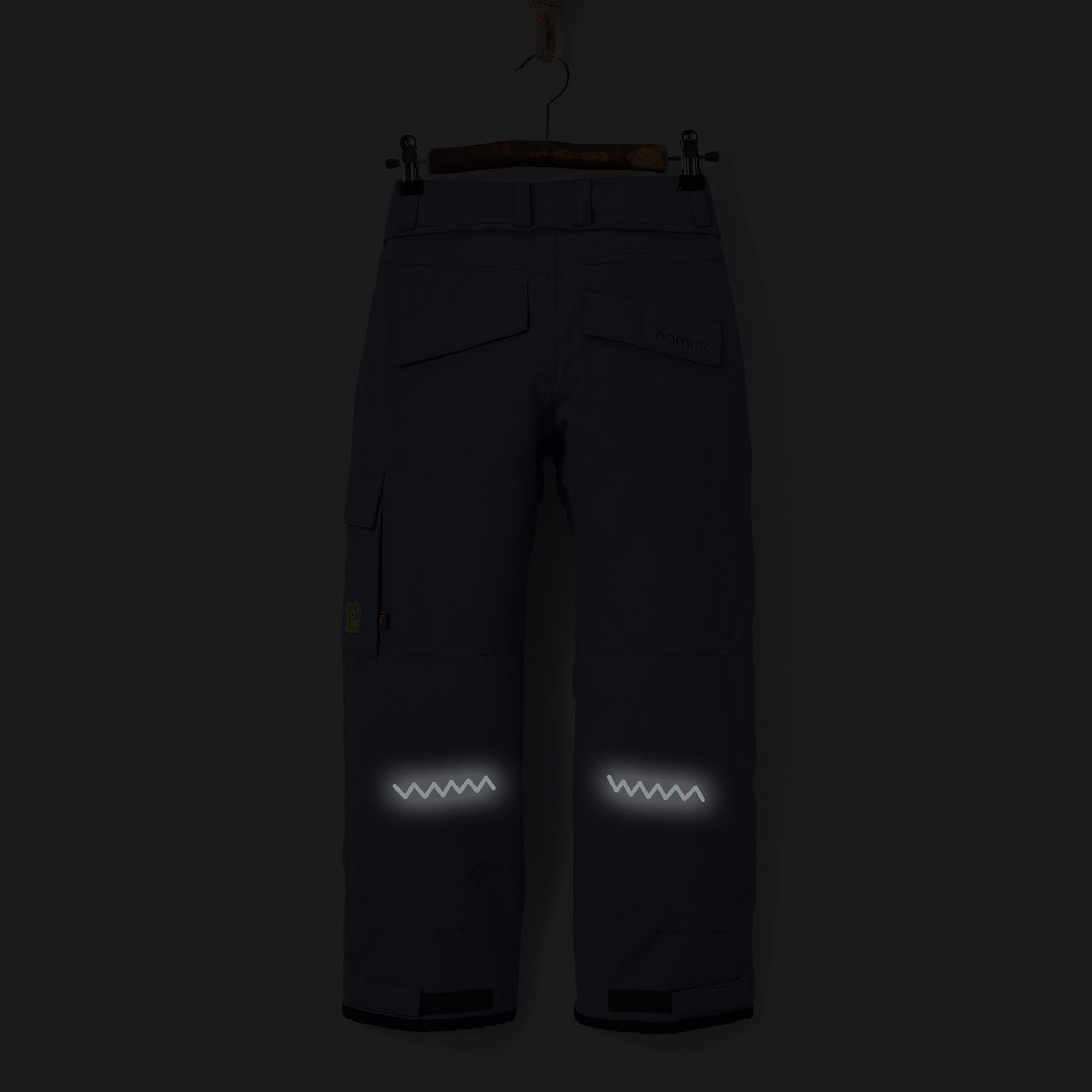 Thanks to our namuk Overall Connection System, which lets all namuk jackets and pants zip together regardless of size, color and season, never again will tears fall because of snow making its way into pants. The adjustable waistband guarantees the perfect fit — whether after a growth spurt or gobbling a mountain of Rösti potatoes in the lodge. Just slip on the pants and into the snow!