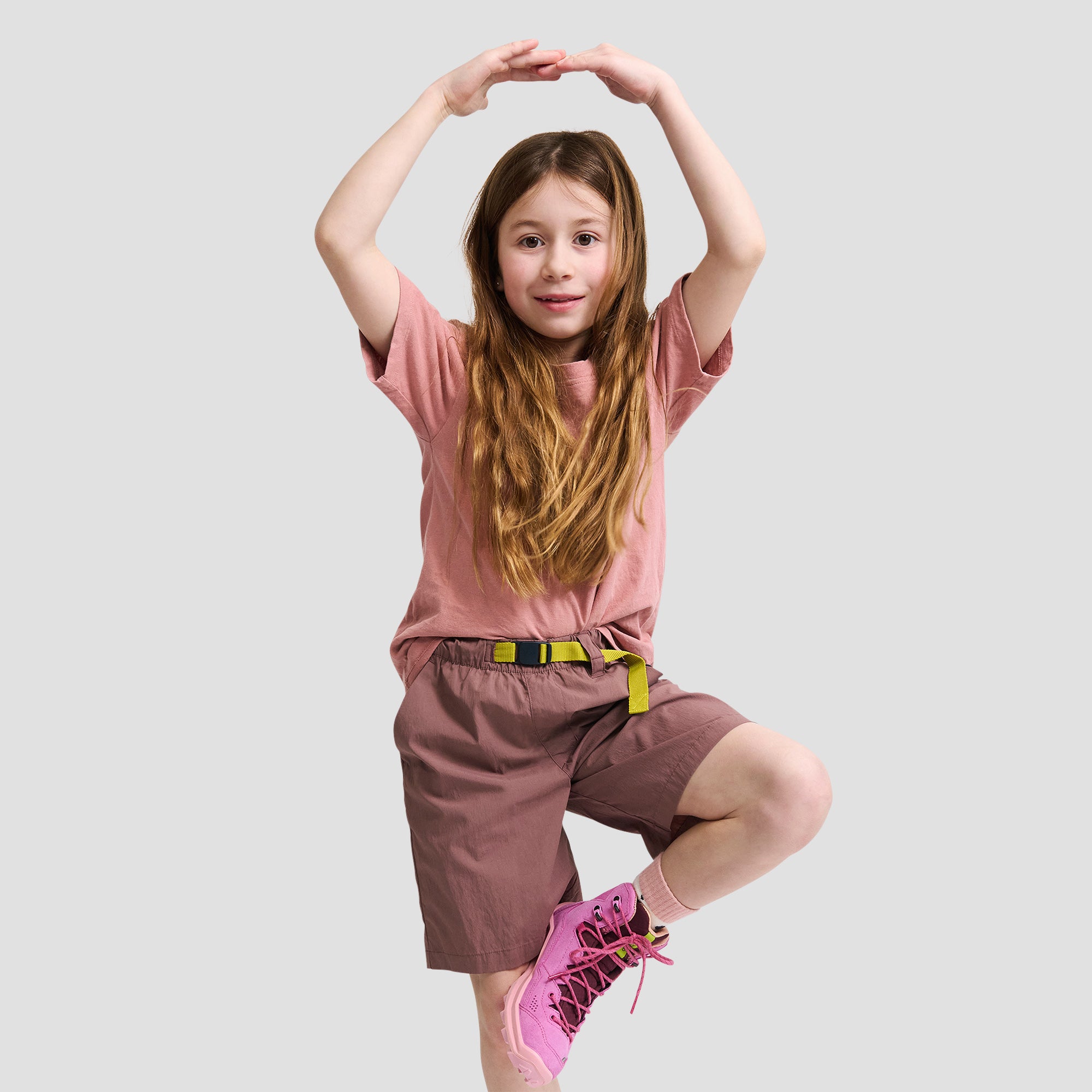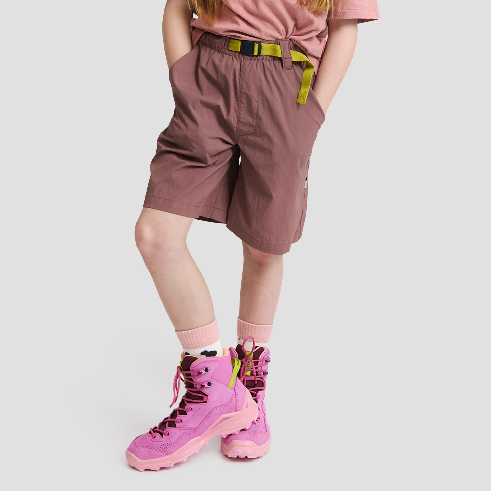 Still, for life on Earth in summer, we really have pulled it off: Linn ist not only super comfortable because the shorts are stretchy, practical thanks to two pockets and a hidden pocket with a key holder, and environmentally friendly thanks to 94% ECONYL® (a material made from recycled nylon) – Linn is also a bathing suit. Yes, really! Simply remove the valuable collection of your treasures from the pockets (important!) and hop into that alpine lake. Afterward, the shorts will dry before the next set of stones has been collected. (Note to our product developers: Why did we work so hard to make the belt extra easy to open? Kids don’t even have to take these shorts off….)