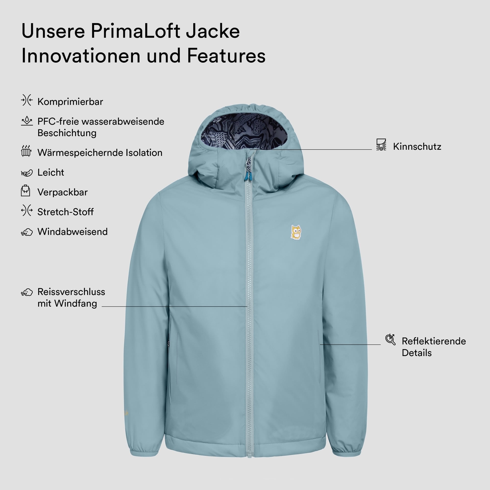 For this jacket we use only the best ingredients: A light and ultra-soft outer fabric developed in Japan, 55% PCR (post-consumer recycled) recycled, extremely heat-retaining Primaloft Active Gold as insulation and a inner lining as fine as silk.