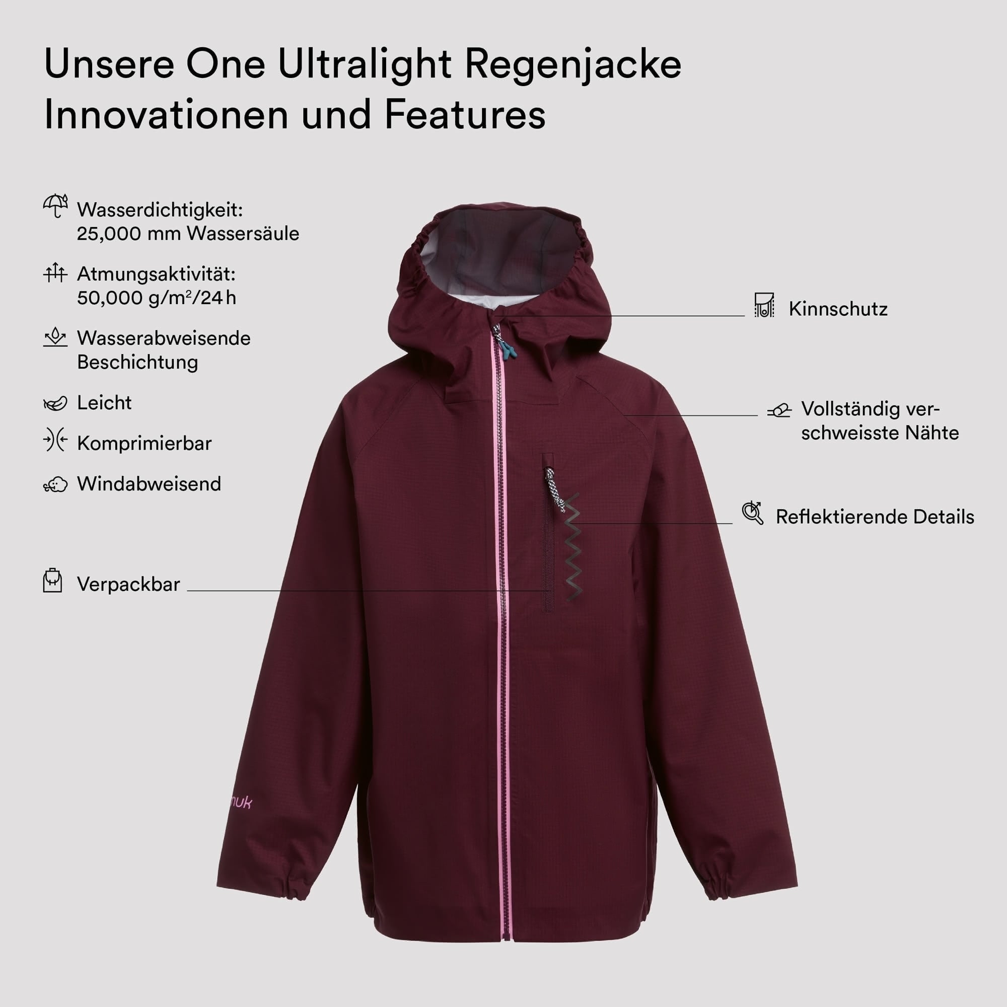 Whether constructing a dam on holiday or just caught in a thunderstorm on the way to school: with the Ultralight Jacket One, your child will be well equipped all year round. There is no overall connection system on this model.