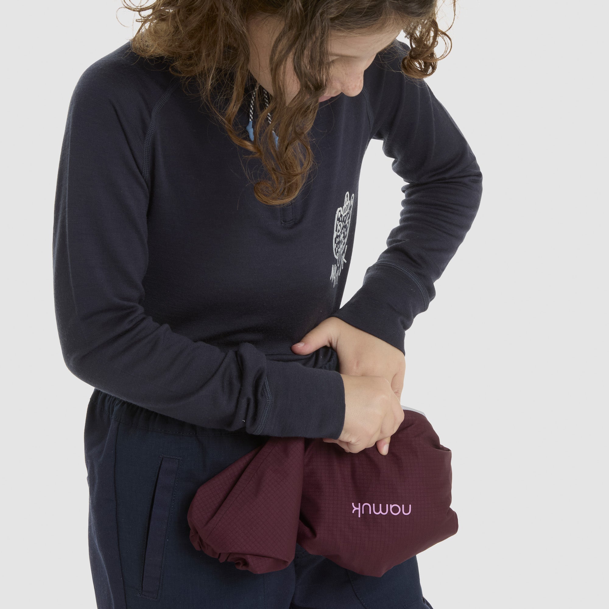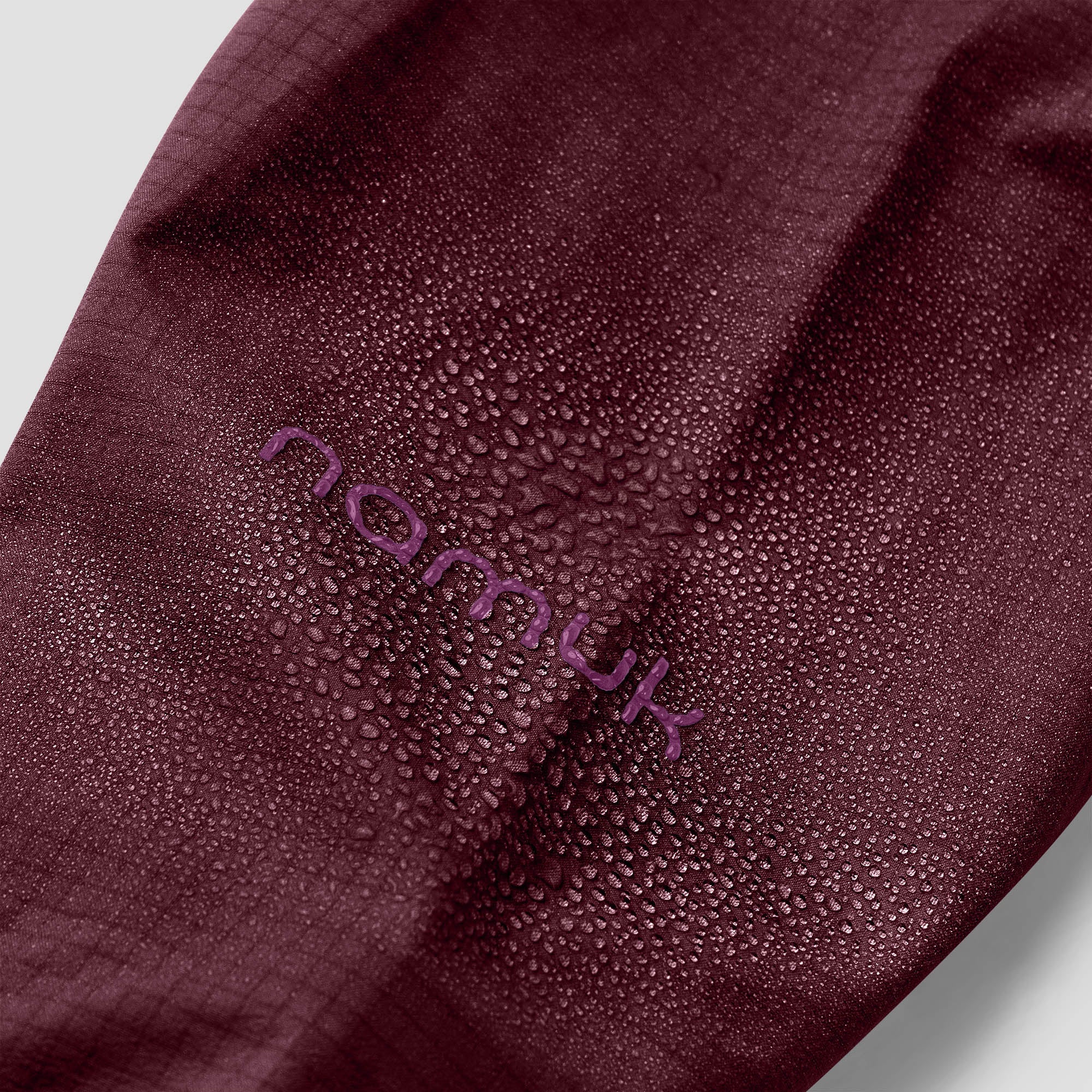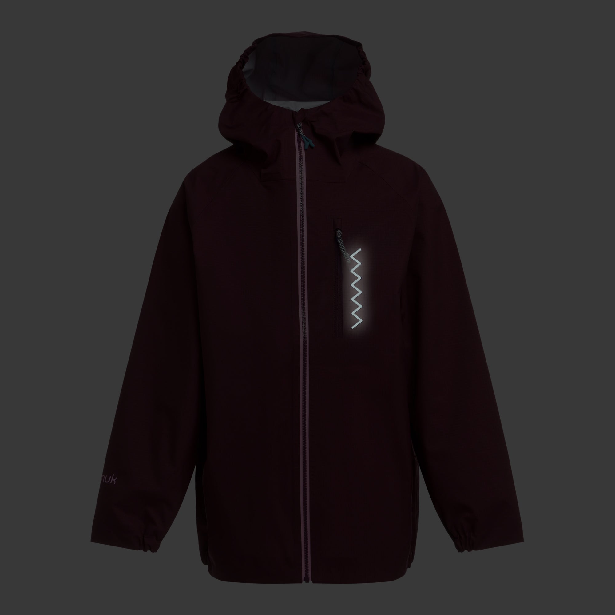 It combines maximum waterproof ratings with minimum weight. The water column of 25'000 mm, in combination with a very high breathability of 50'000 gr/m2/24, ensures that sweat can escape during hours of running around in the rain, but the jacket still keeps moisture on the outside, so the inside always stays nice and dry. At 150 grams (size 128/134), the jacket weighs slightly more than a Swiss chocolate bar and can be easily stowed away in its own inner pocket.