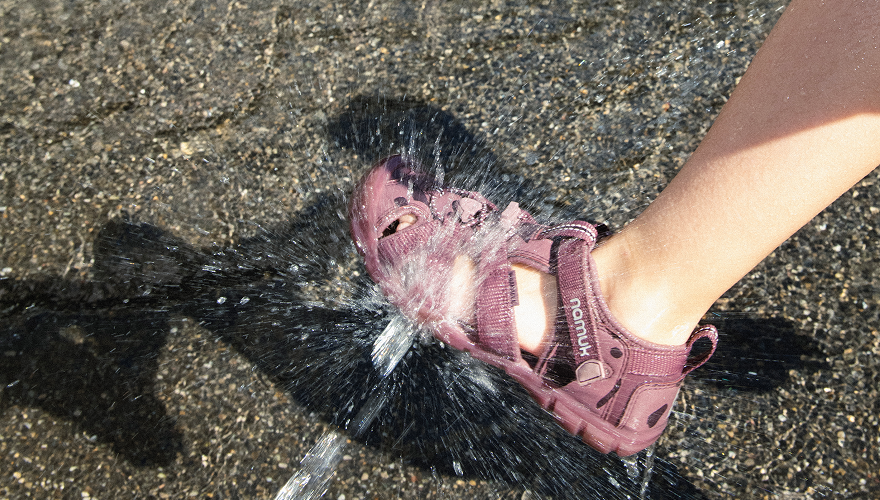 Unsere namuk x KEEN Sandalen sind der perfekte Begleiter für absolut jeden Sommertag. Deine Kids können damit wandern, spielen, klettern und sogar ins Wasser laufen. Durch die dünne Sohle fühlt es sich fast an wie barfuss laufen, während die kleinen Kinderfüsse durch den Zehenschutz vor spitzen Steinen und anderen Stolperfallen auf dem Weg geschützt sind.