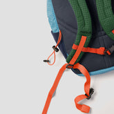 Das Rolltop ist kinderleicht zu öffnen, das Innenfutter lässt sich einfach ausstülpen, um es zu reinigen oder um es im Wald als Sitzunterlage zu benutzen. Die komplett reflektierenden Zugkordeln verschaffen Sichtbarkeit in der Dämmerung und helfen gleichzeitig den Rucksack zu komprimieren, wenn der Proviant verputzt ist. Und sollte der Pullover mal nass werden, lässt der sich so bequem ausserhalb des Rucksacks transportieren. Auch die Wasserflasche findet bequem in der Seitentasche Platz und kann mit einem zusätzlichen Gummiband fixiert werden – so ist sie immer griffbereit und trotzdem sicher verstaut.